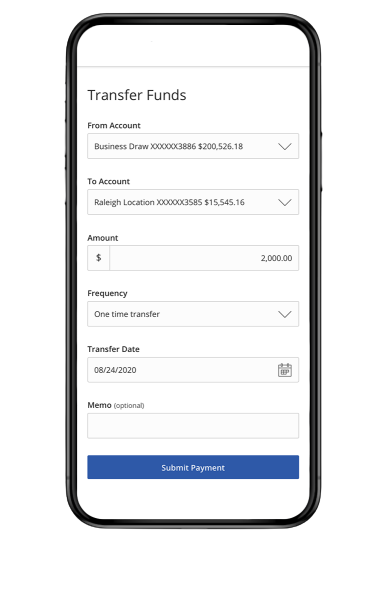 Transfer between accounts or send money using ACH and wires